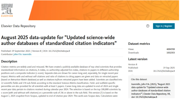 On September 19, 2025, Stanford University released the "Stanford University Top 2% Scientists List 2025".