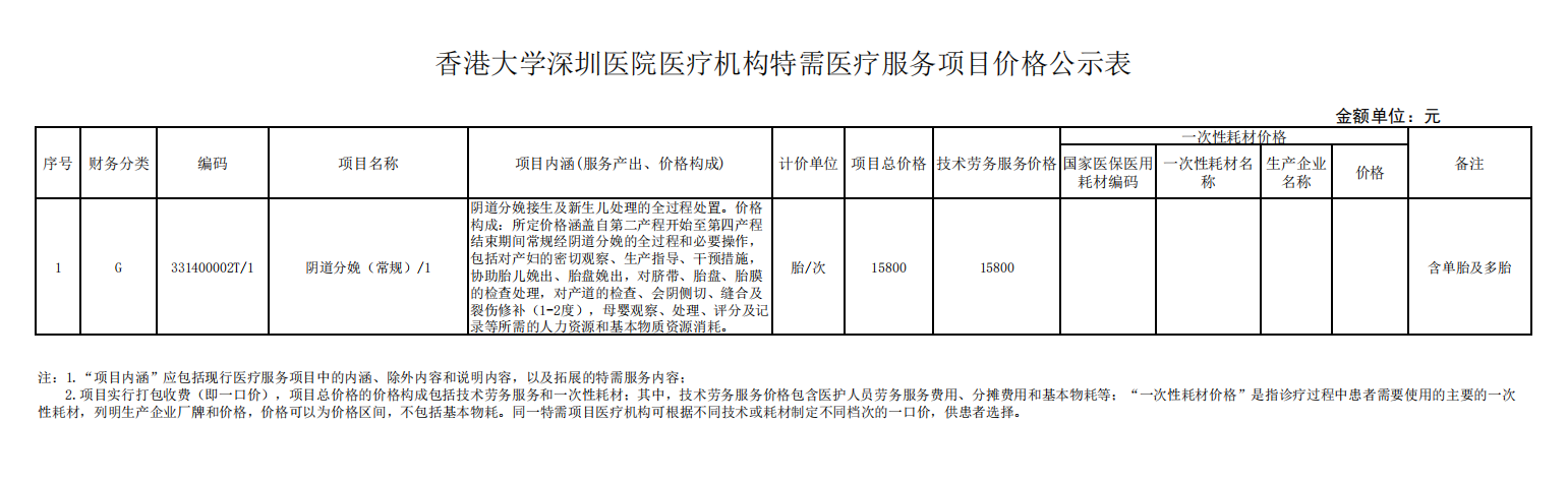 香港大学深圳医院医疗机构特需医疗服务项目价格公示(20250919)