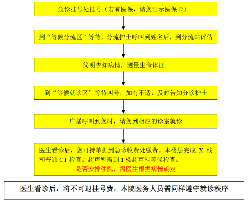 医务人员会根据患者的病情分类,安排就诊顺序,优先诊治危重患者,同一类患者则按先后顺序就诊。所有急诊患者,包括内、外、妇、产、儿科等由急诊科医生和护士主理。谢谢您的等候,敬请谅解!