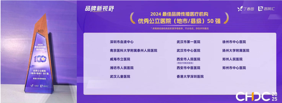 香港大学深圳医院荣登“2024年度最佳品牌传播医疗机构优秀公立医院 50 强”榜单&获深圳市医学人文建设十大目标典型案例奖
